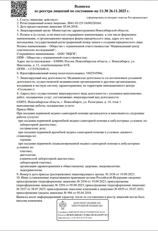 Точность ДНК-теста, который вы можете приобрести в нашем центре «ДТЛ» в Борзе, крайне высока и достигает 99,99999%, благодаря использованию передовых методов анализа и диагностического оборудования в ДНК-лабораторий-партнёров.